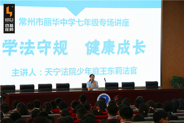 近日,麗華中學邀請了天寧法院少年廳王東莉法官到校,給七年級學生上了一堂以“學法守規 健康成長”為主題的精彩講座。