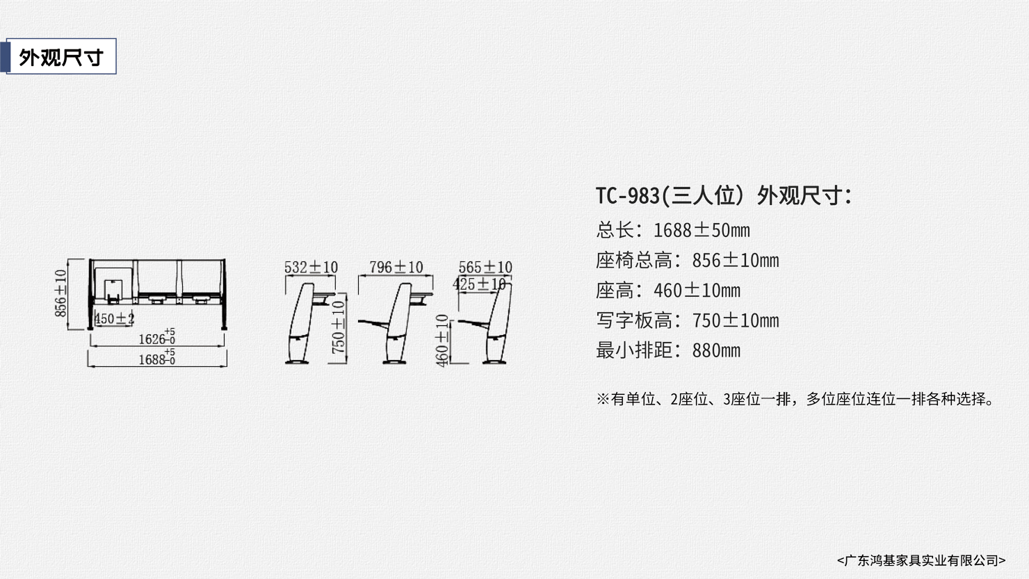 此課桌椅的設計采用柔和的線條打破傳統市場,柔和的線條與座板和寫字板形成的剛硬線條成對比,側面的造型靈感來源于帆船的外形;清新亮麗的顏色裝飾課桌椅,讓課堂氛圍變得輕松活躍,給人一種無區束卻又不散漫豎而有序的學習環境;舒適又堅實的感覺,使整個設計符合人體工程學原理。座阻尼慢回位功能,使學習環境更寧靜。可為學校、報告廳等最佳首選之一。 |