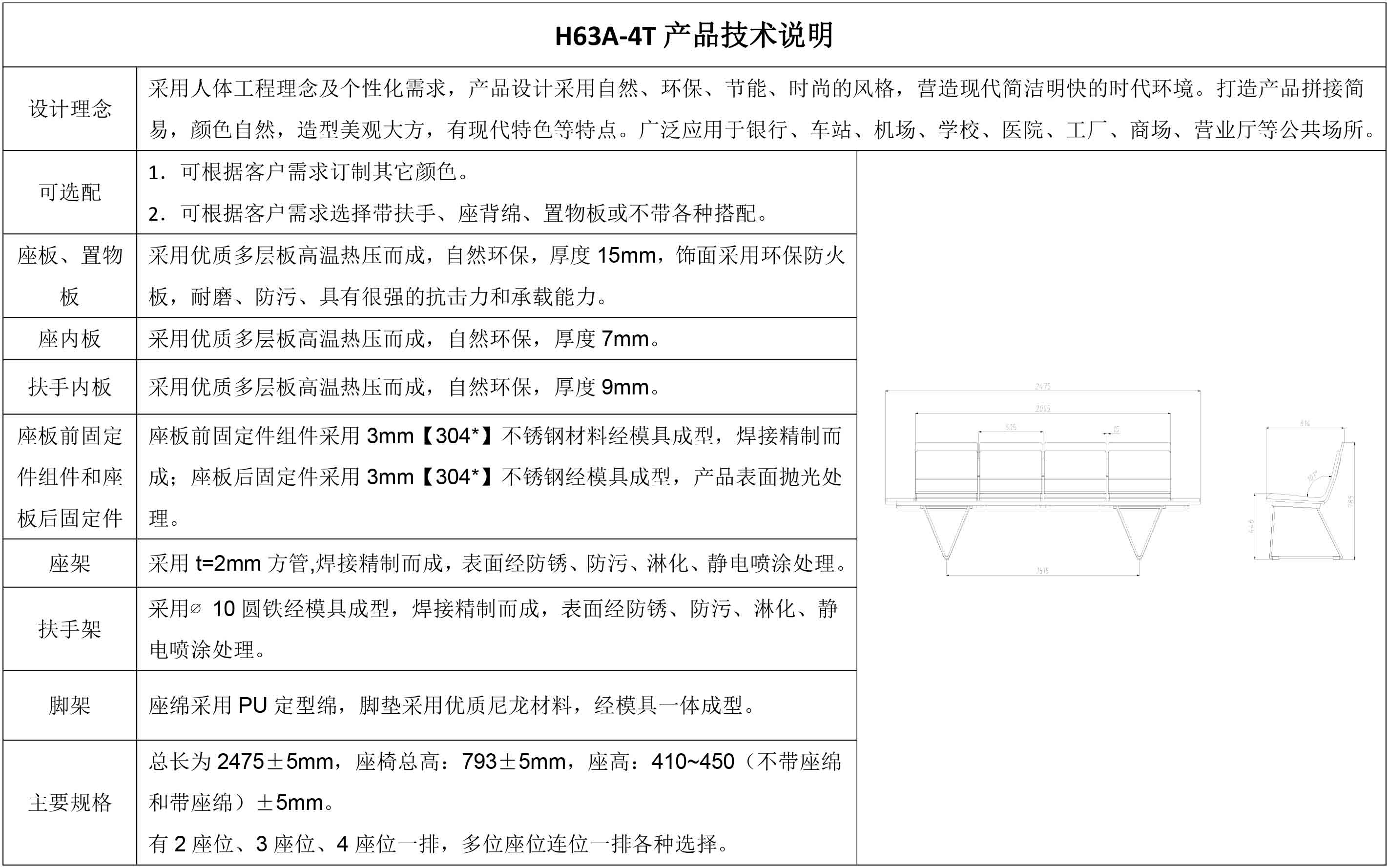 等候椅H63A-4FT